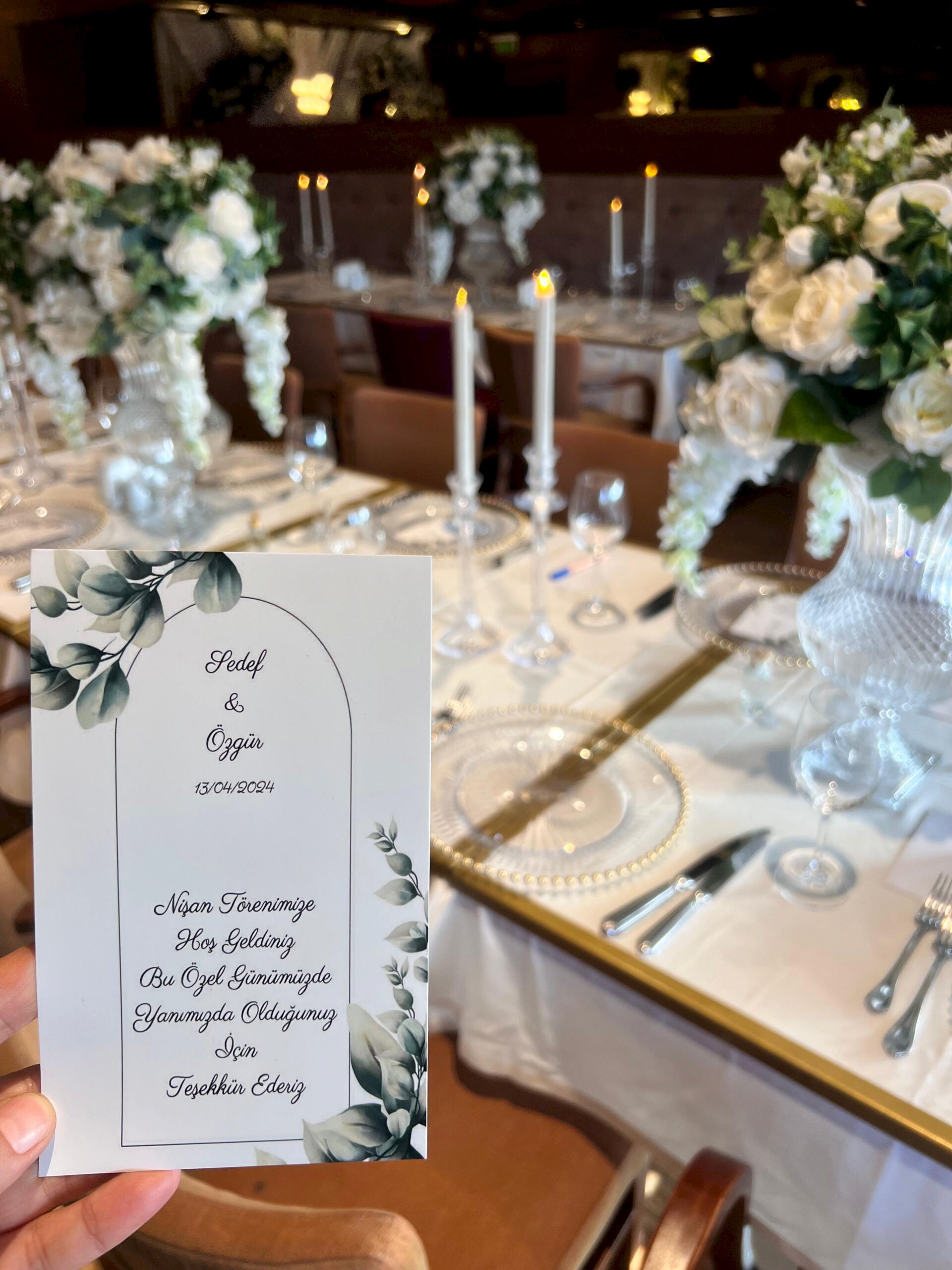 Zarif konseptler, romantik süslemeler, şık masa düzenlemeleri, fotoğraf alanları, ışık ve müzik eşliğinde etkileyici bir atmosfer ile nişan organizasyonunuzu baştan sona planlıyoruz. Her detay sizin isteklerinize göre tasarlanıyor, bu özel gününüz sevdiklerinizle birlikte kutlayacağınız unutulmaz bir şölene dönüşüyor.